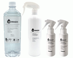 水の洗浄力と除菌能力を極限まで高めた安心と安全を兼ね備えたマルチクリーナーです。ノロウイルスやインフルエンザ、食中毒菌なども不活化させる能力があります。何より使う人に安心安全で、アルコールや次亜塩素酸のような臭いや刺激もなく、小さなお子様の手肌でも荒れません。e-WASHの成分であるアルカリ電解水(SAIW/スーパーアルカリイオン水)は99.9%がお水。万が一舐めてしまっても安心です。洗浄と拭きとりにより、洗い流すことでのウイルス感染防止や衛生対策に家族皆さまでご利用下さい。未来の環境への影響にも心を配る優しいお母さんとお父さんの強い味方です。
