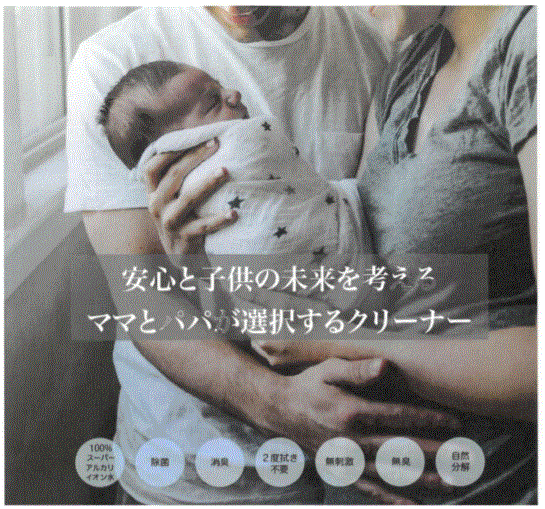 水の洗浄力と除菌能力を極限まで高めた安心と安全を兼ね備えたマルチクリーナーです。ノロウイルスやインフルエンザ、食中毒菌なども不活化させる能力があります。何より使う人に安心安全で、アルコールや次亜塩素酸のような臭いや刺激もなく、小さなお子様の手肌でも荒れません。e-WASHの成分であるアルカリ電解水(SAIW/スーパーアルカリイオン水)は99.9%がお水。万が一舐めてしまっても安心です。洗浄と拭きとりにより、洗い流すことでのウイルス感染防止や衛生対策に家族皆さまでご利用下さい。未来の環境への影響にも心を配る優しいお母さんとお父さんの強い味方です。