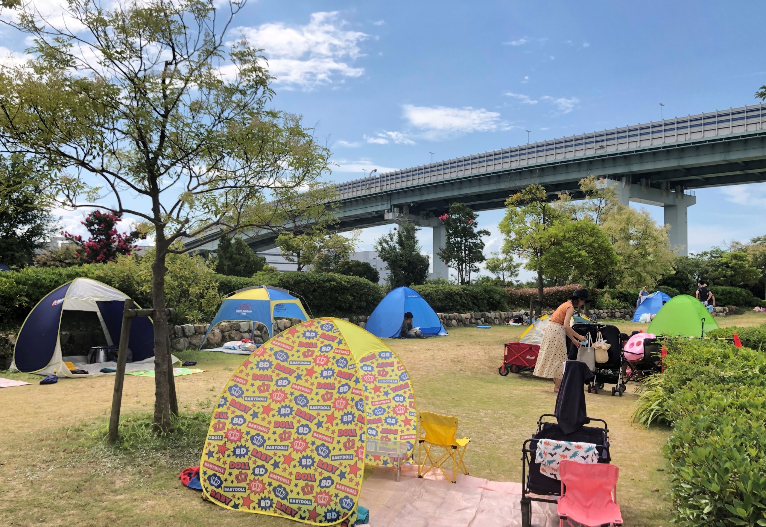 我が家はワンタッチテントをいつも持参するので芝生エリアを利用。さすがに入場制限していることもありテントエリアもいつもの半分ぐらいでした。(例年はこちらのスペースにワンタッチテントがひしめき合います)