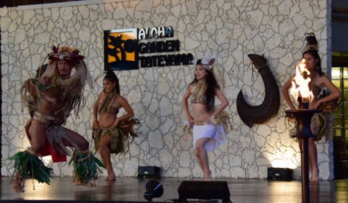 フラダンスのショーが見られるステージは迫力満点。
