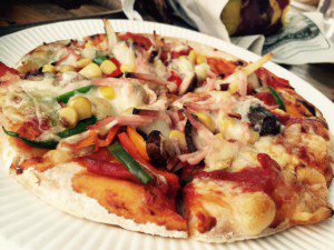 具を乗せたピザを石窯で焼いてもらって出来立てをおいしくいただきました♪