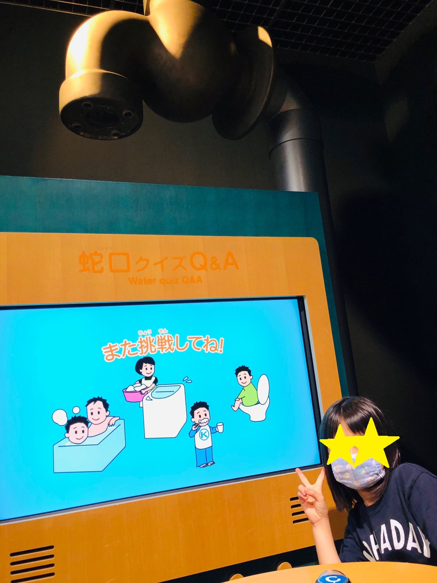 水道工事を体験するゲームやクイズは意外と長い時間、子どももハマっていました。