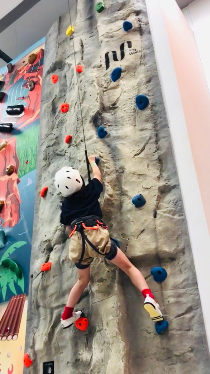 クライミングウォールエリアはロープを装着してクライミングをします。